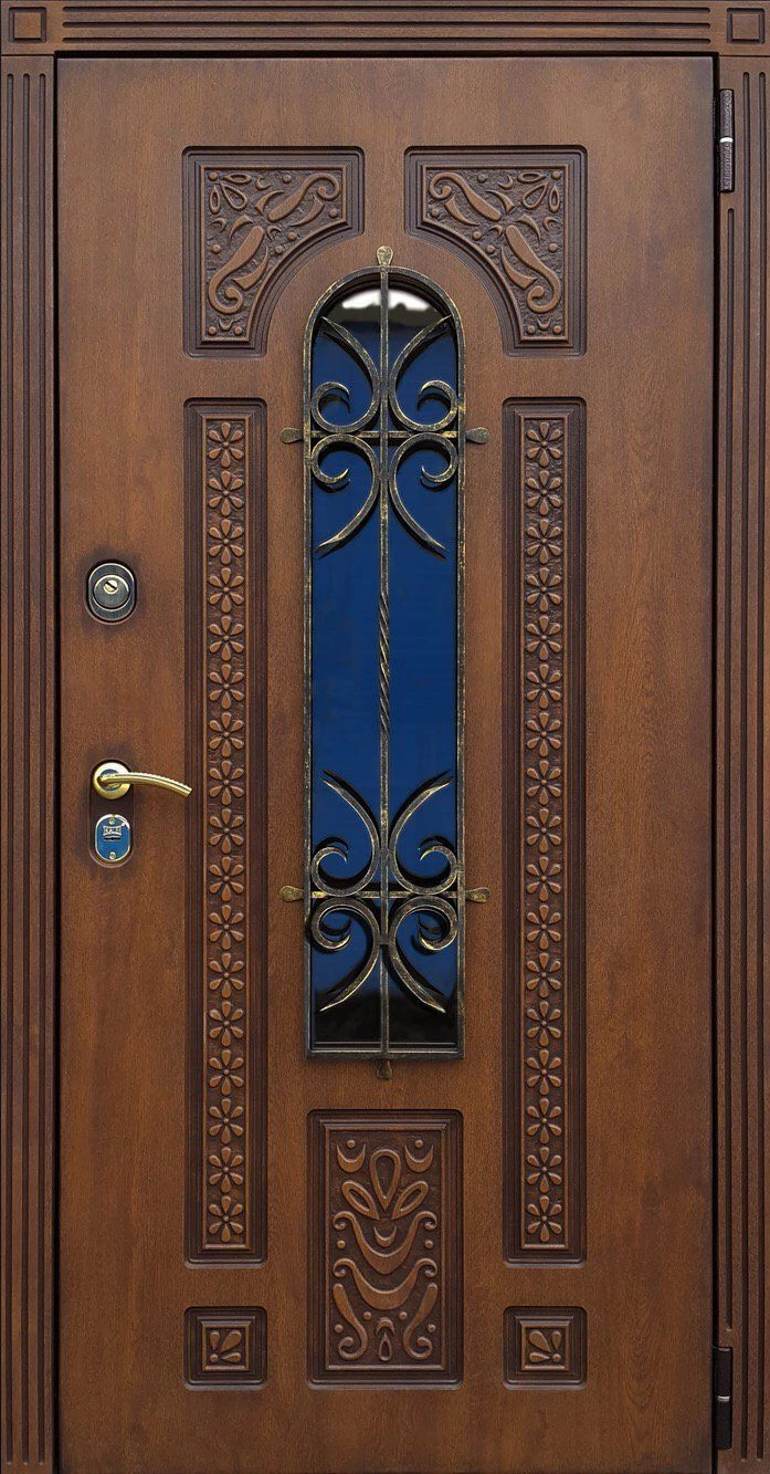 Входные двери в Карачеве с применением декора витражом изготавливаются из стального профиля, придающего прочность конструкции, а сама витражная вставка обладает высокой взломостойкостью, поскольку для витражных композиций используется специальное стекло, обработанное особым образом. Усилить надежность витражного элемента можно с помощью использования декоративных кованных решеток.