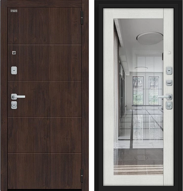 Надежная входная Дверь Браво Флэт/BChrome Almon/Bianco Melinga премиум класса по цене 42 159 руб. Большая толщина стали защитит от проникновения в ваш дом, квартиру или коттедж. Используется очень качественная фурнитура: замки, цилиндры, ручки, защелки. Покрытие и отделка двери изготовлено под внимательным контролем производителя. Дверь имеет долгий срок службы и гарантию.